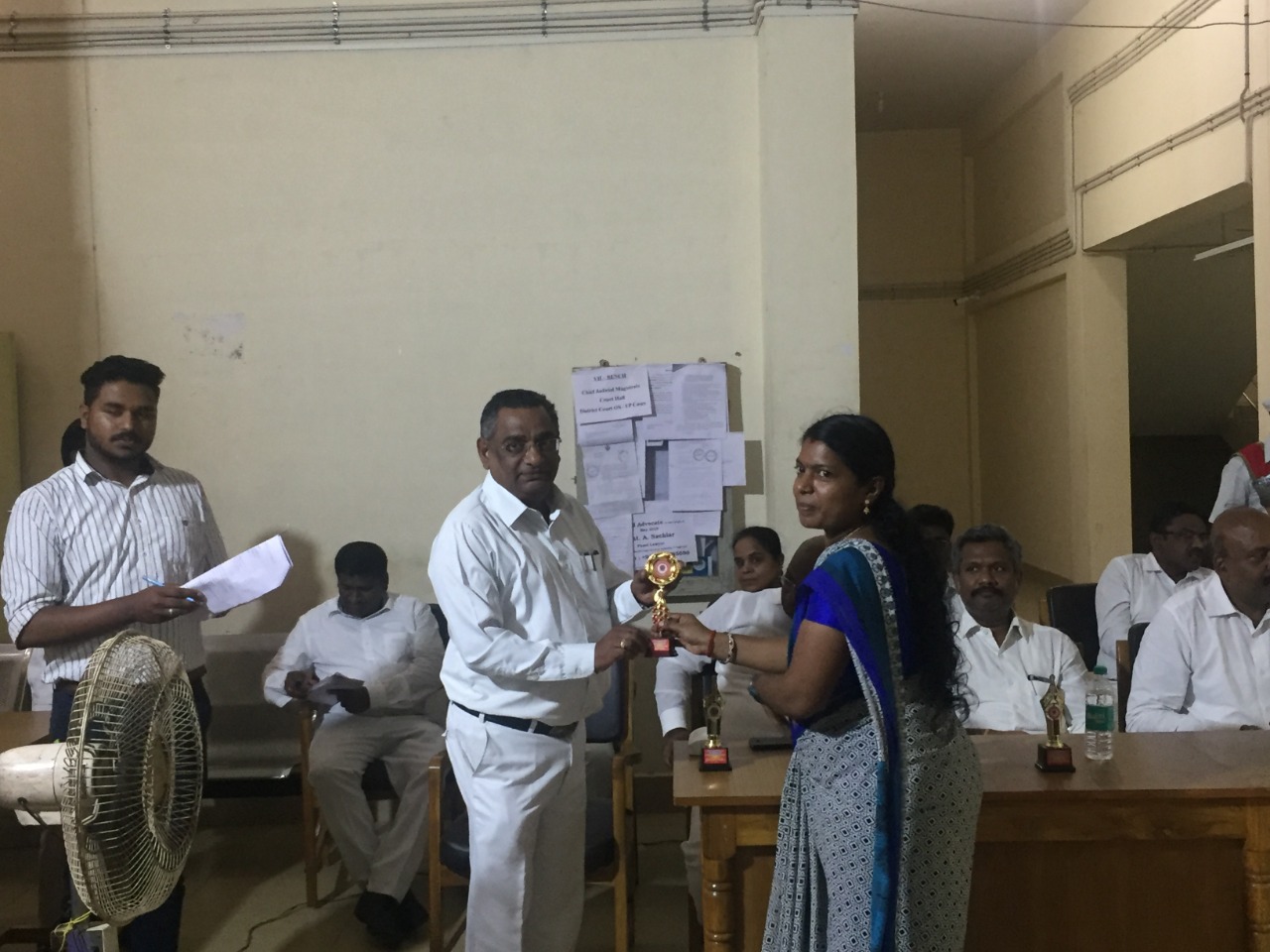 2019 ம் ஆண்டு நடைபெற்ற பத்தாம் வகுப்பு மற்றும் 12ம் வகுப்பு தேர்வில் முதல் மற்றும் 2ம் இடம் பெற்ற கன்னியாகுமரி மாவட்ட நீதித்துறை ஊழியர்களின் குழந்தைகளுக்கான பரிசளிப்பு விழா மற்றும் 06-04-2019 அன்று கன்னியாகுமரி மாவட்ட நீதித்துறை ஊழியர் சங்கத்தால் நடத்தப்பட்ட ஊழியர்களுக்கான விளையாட்டு போட்டி மற்றும் கோலப் போட்டிகளுக்கான பரிசளிப்பு விழா நாகர்கோவில் ஒருங்கிணைந்த நீதிமன்ற வளாகத்தில் வைத்து மரியாதைக்குரிய முதன்மை மாவட்ட நீதிபதி திரு. கருப்பையா அவர்கள் தலைமையிலும் மரியாதைக்குரிய குடும்ப நல நீதிமன்ற மாவட்ட நீதிபதி திரு. கோமதிநாயகம், மகிளா நீதிபதி திரு. ஜாண் ஆர்.டி. சந்தோஷம், கூடுதல் மாவட்ட நீதிபதி திரு. அப்துல் காதர், Permanent Lok Adalat Chairman திரு. மகிழேந்தி, தலைமை குற்றவியல் நடுவர் திரு. அருணாச்சலம், சார்பு நீதிபதிகள் மற்றும் குற்றவியல் நடுவர் ஆகியோர் கலந்து கொண்டு பரிசுகளை வழங்கி சிறப்பித்தனர். விழாவில் கலந்து கொண்ட நீதிபதிகள் அனைவருக்கும் கன்னியாகுமரி மாவட்ட நீதித்துறை ஊழியர் சங்கத்தின் சார்பில் நினைவு பரிசு வழங்கி சிறப்பிக்கப்பட்டது.