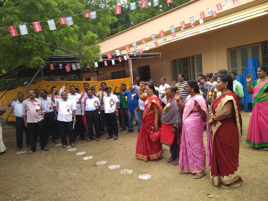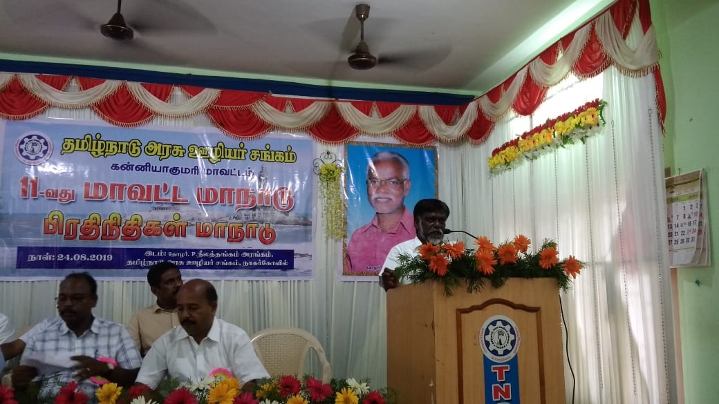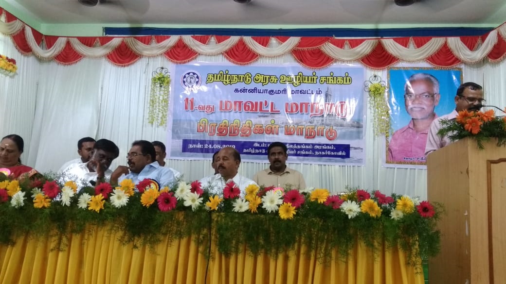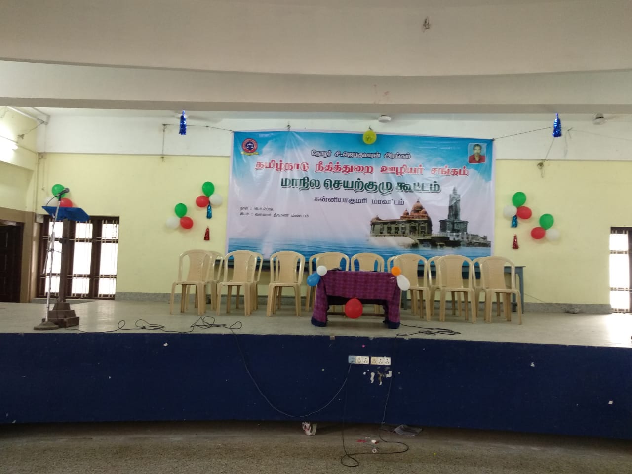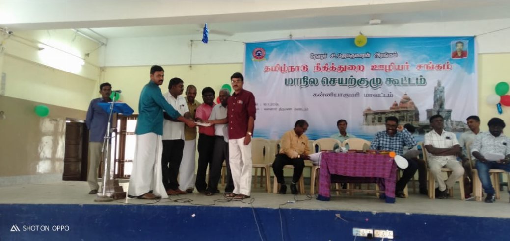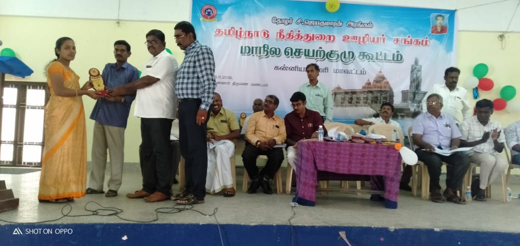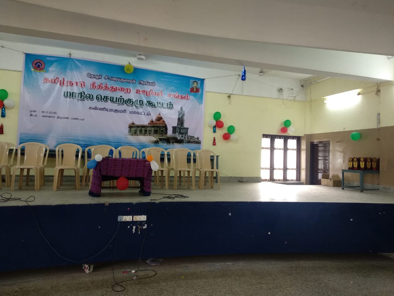 தமிழ் நாடு நீதித்துறை ஊழியர் சங்க மாநில செயற்குழு கூட்டம் 16.11.2019 சனிக்கிழமை நாகர்கோவில் நீதிமன்ற வளாகத்தின் அருகே உள்ள வளனார் திருமண மண்டபத்தில் வைத்து காலை 10 மணியளவில் மாநில தலைவர் தோழர். செந்தில் குமார் அவர்களால் கொடியேற்றி துவங்கி வைக்கப்பட்டது. அதன் பின்னர் *நீதித்துறையில் பணியாற்றி காலமான தோழர்களுக்கு மலர் அஞ்சலி செலுத்தப்பட்டு சரியாக 10.30 மணிக்கு கன்னியாகுமரி மாவட்ட நீதித்துறை ஊழியர் சங்க செயலாளர் திரு. மங்கை மணவாளன் அவர்களால் வரவேற்புரை வழங்கி தமிழ் நாடு நீதித்துறை ஊழியர் சங்க *மாநில தலைவர், பொதுச் செயலாளர் மற்றும் மாநில நிர்வாகிகளுக்கு நினைவுப் பரிசு வழங்கி வரவேற்கப்பட்டது. நிகழ்ச்சியில் சிறப்பு விருந்தினராக அரசு ஊழியர் சங்க மாநில துணை தலைவர் தோழர். வெங்கடேசன், நமது முன்னாள் மாநில தலைவர் தோழர். கருணாகரன், *முன்னாள் மாநில துணை தலைவர் மண்ணின் மைந்தர் தோழர். வேதமணி, கன்னியாகுமரி மாவட்ட நீதித்துறை ஊழியர் சங்க முன்னாள் செயலாளர் தோழர். லெக்ஷ்மண பெருமாள் ஆகியோருக்கும் நினைவு பரிசு வழங்கி சிறப்பிக்கப்பட்டது. கூட்டத்தில் பொருளாளர் அறிக்கை வாசிக்கப்பட்டு, எழுத்து மூலமாக வழங்கப்பட்ட பொதுச் செயலாளர் அறிக்கையின் மீது ஒவ்வொரு மாவட்டத்திலிருந்து வந்த மாவட்ட நிர்வாகிகள் விவாதம் மேற்கொண்டனர். *மொத்தம் 25 மாவட்டங்கள் விவாதத்தில் கலந்து கொண்டு சிறப்பித்தனர். நிறைவாக மாவட்ட நிர்வாகிகளின் விவாதங்களின் அடிப்படையில் மாநில மையத்தால் தீர்மானங்கள் பல நிறைவேற்றப்பட்டன.