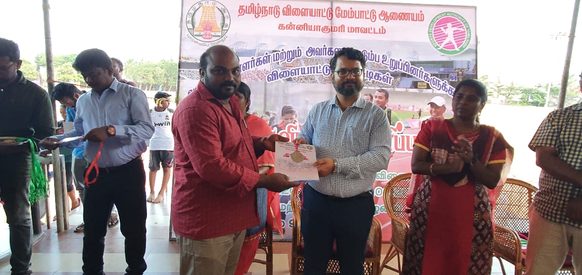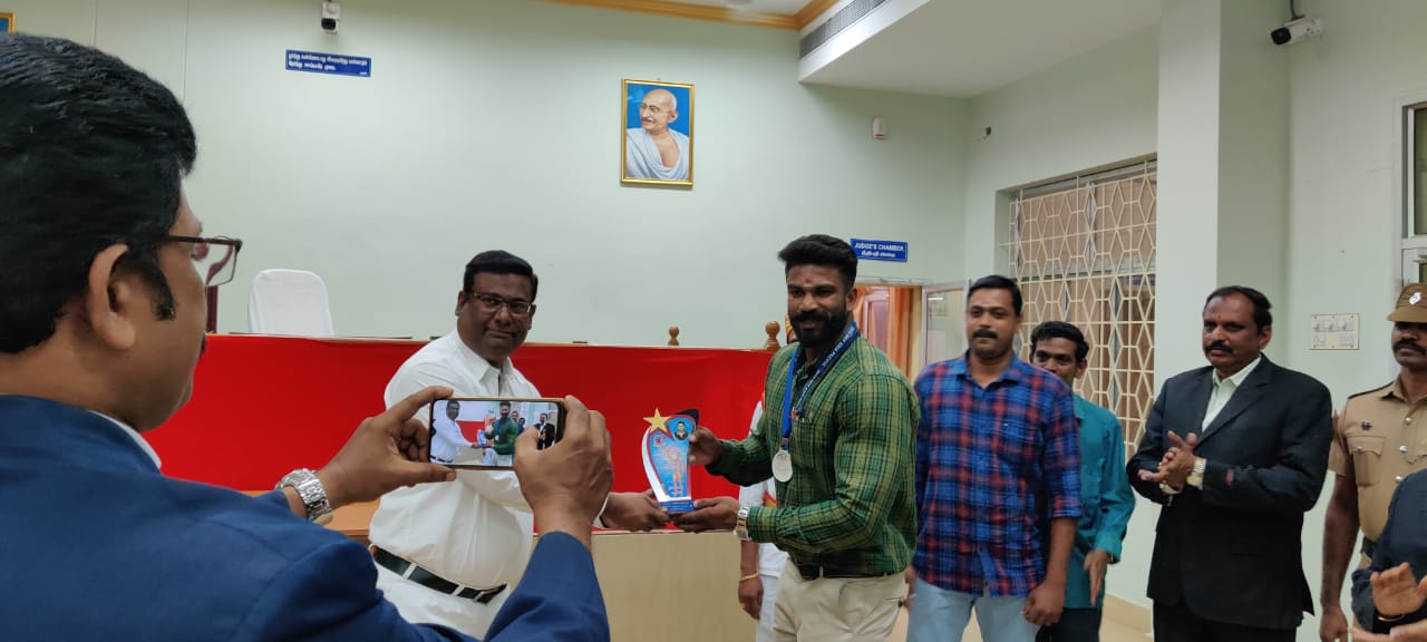 ஆசிய அளவிலான உடல்வலுப் போட்டியில் கலந்து கொண்டு வெள்ளிப்பதக்கம் வென்று நமது நாட்டிற்கும் நமது நீதித்துறைக்கும் பெருமை சேர்த்த நமது முதன்மை மாவட்ட நீதிமன்ற நகல் ஆராய்வாளர் திரு. நிஷாந்த் அவர்களுக்கு 04.12.2019 புதன் கிழமை மாலை கன்னியாகுமரி மாவட்ட நீதித்துறை ஊழியர் சங்கத்தின் சார்பில் மரியாதைக்குரிய முதன்மை மாவட்ட நீதிபதி அவர்கள் முன்னிலையில் பாராட்டு விழா நடைபெற்றது. விழாவில் கன்னியாகுமரி மாவட்ட நீதித்துறை ஊழியர் சங்கத்தின் சார்பில் நினைவுப் பரிசு மரியாதைக்குரிய முதன்மை மாவட்ட நீதிபதி அவர்கள் வழங்கி திரு. நிஷாந்த் அவர்களை கௌரவித்து வாழ்த்திப் பேசினார். விழாவில் நமது ஊழியர்கள் அனைவரும் கலந்து கொண்டு சிறப்பித்தனர்.