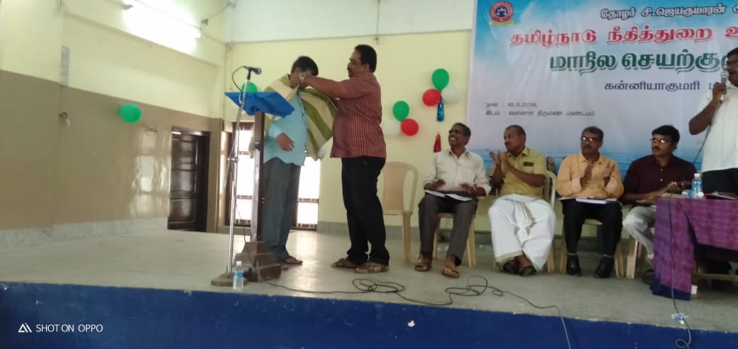 30.06.2019 அன்று மரியாதைக்குரிய முதன்மை மாவட்ட நீதிபதி திரு. S. கருப்பையா அவர்களுக்கு பணி நிறைவு பாராட்டு விழா கன்னியாகுமரி மாவட்ட நீதித்துறை ஊழியர்களால் நடத்தப்பட்டது. விழாவினை மரியாதைக்குரிய மகிளா நீதிபதி திரு. ஜாண் ஆர்.டி. சந்தோஷம் அவர்கள் முன்னிலையில் நடத்தப்பட்டது. விழாவில் தலைமை குற்றவியல் நடுவர், சார்பு நீதிபதிகள், குற்றவியல் நடுவர்கள், நாகர்கோவில் வழக்கறிஞர்கள் சங்க தலைவர், செயலாளர் மற்றும் முன்னாள் வழக்கறிஞர்கள் சங்க தலைவர் ஆகியோர் கலந்து கொண்டு சிறப்புரையாற்றினர். விழாவில் கன்னியாகுமரி மாவட்ட நீதித்துறை ஊழியர்கள் திரளாக கலந்து மரியாதைக்குரிய முதன்மை மாவட்ட நீதிபதி அவர்களின் சிறப்பை வாழ்த்திப்பேசி சிறப்பித்தனர்.