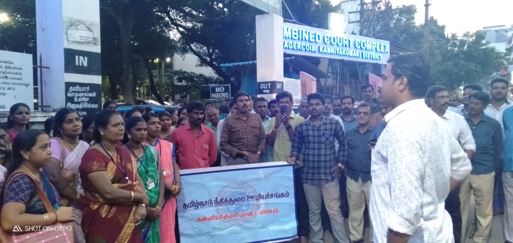 இந்த கொடூரச்செயலை கண்டித்து 05-11-2019 *மாலை 6.00 மணிக்கு நாகர்கோவில் முதன்மை மாவட்ட நீதிமன்ற வளாகத்தின் வாயில் முன்பாக கண்டன ஆர்ப்பாட்டம் நடைபெற்றது. ஆர்பாட்டத்தில் திரளாக ஊழியர்கள் கலந்து கொண்டு ஆர்பாட்டத்தினை சிறப்பித்தனர்.