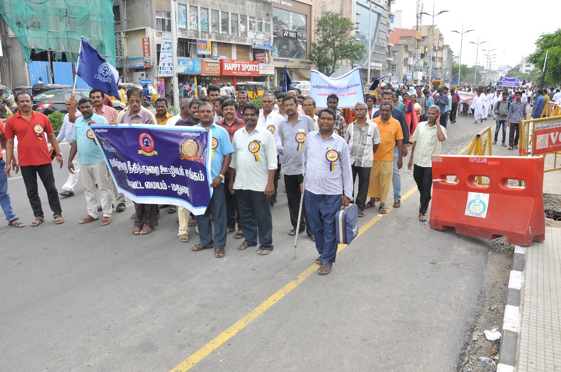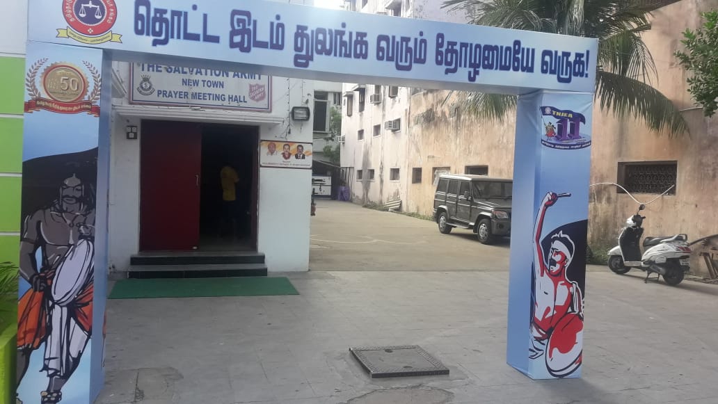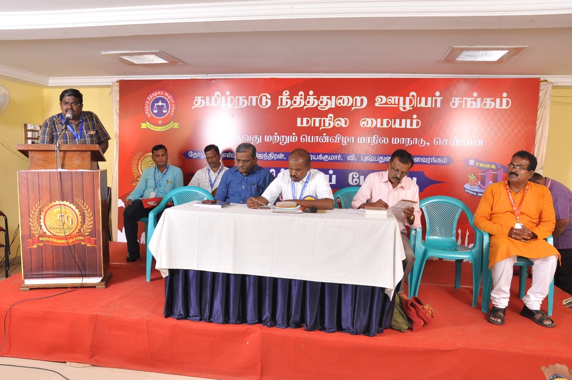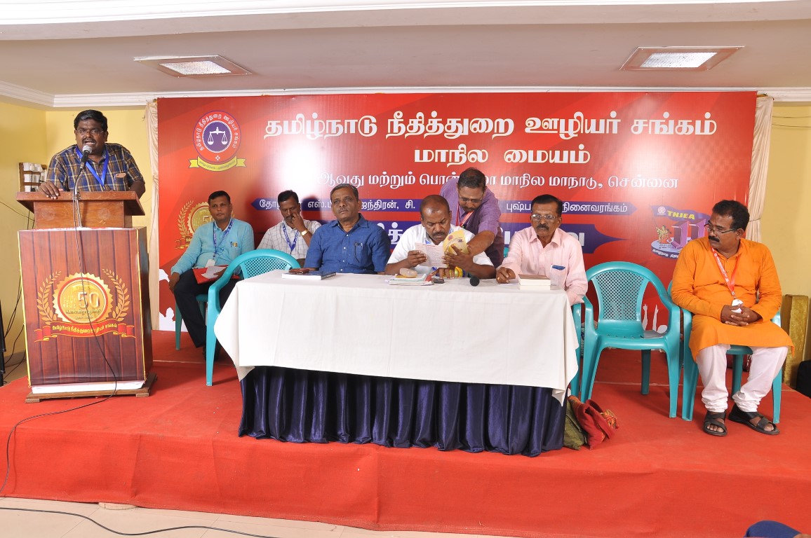 மாவட்ட நீதிமன்ற தலைமை நிர்வாக அலுவலர் மற்றும் மாவட்ட சிரஸ்தார்களுக்கு மாவட்ட மாறுதலை உடனடியாக கைவிட்டு மீண்டும் சொந்த மாவட்டத்திலேயே பணிஅமர்த்தவும் நீதித்துறையில் பல வருடங்களாக பணிபுரியும் தற்காலிக பணியாளர்களை 10(a)i பணி நிரந்தம் செய்ய வேண்டும் என்ற கோரிக்கையை வலியுறுத்தி வாயில் கூட்டம் நடைபெற்றது. கூட்டத்தில் திரளான ஊழியர்கள் கலந்து கொண்டனர்.