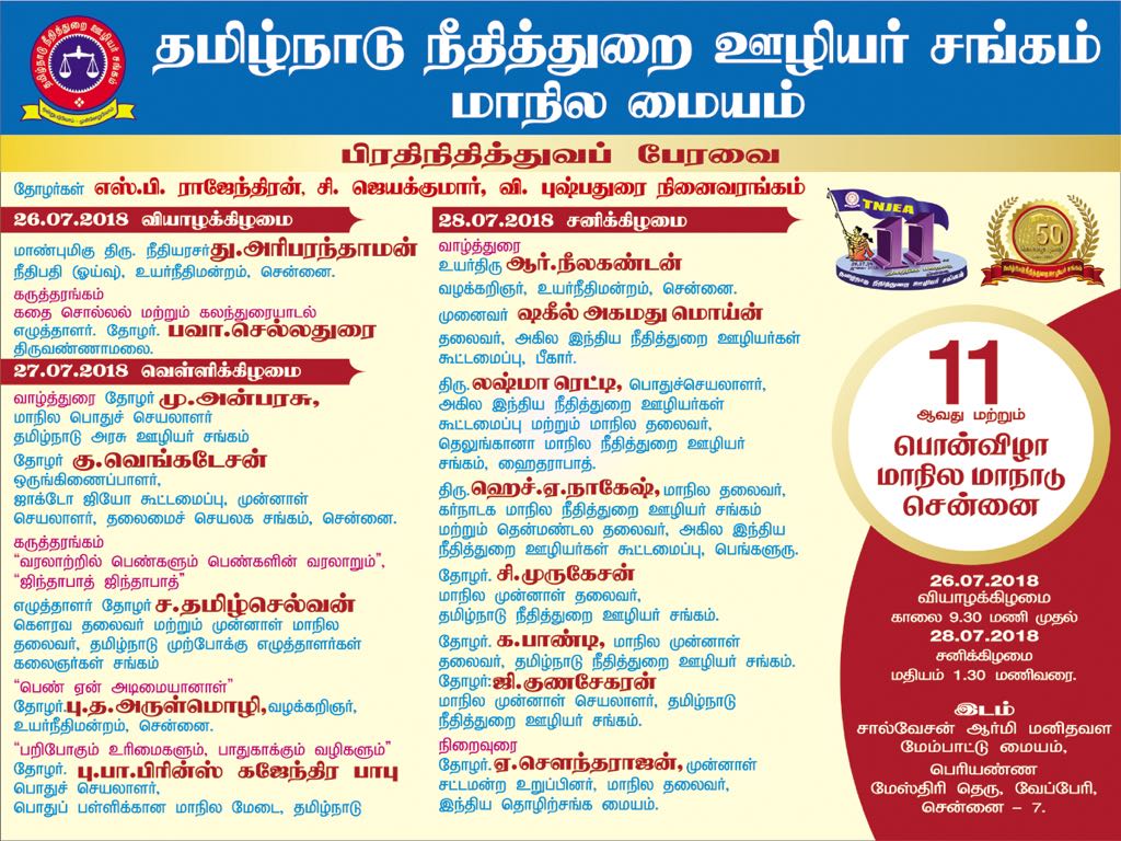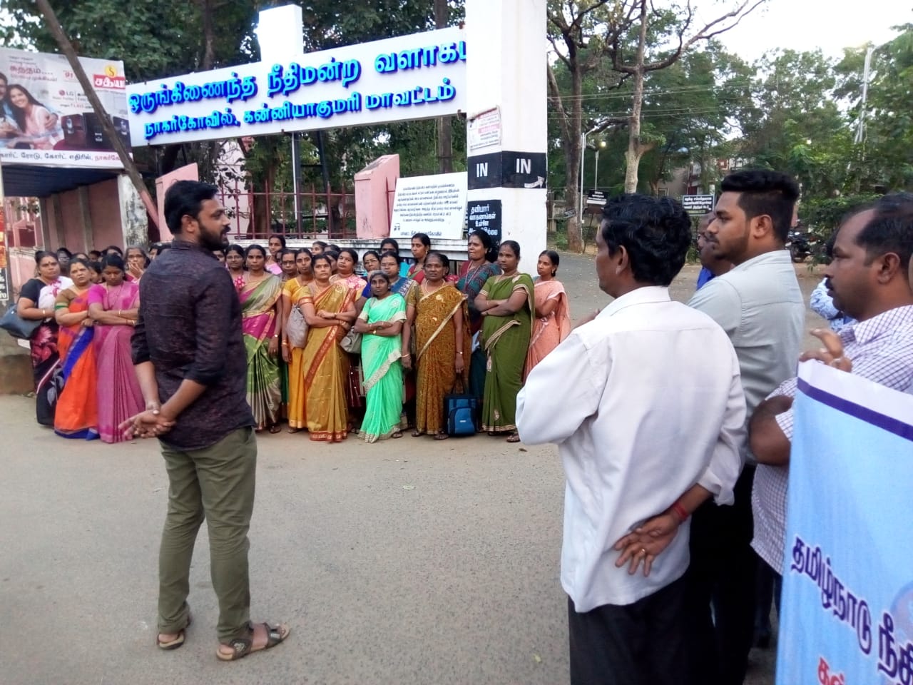 தமிழ் நாடு நீதித்துறை ஊழியர் சங்கத்தின் கன்னியாகுமரி மாவட்டத்தின் சார்பில் 26.12.2018 அன்று மாலை 6 மணியளவில் நாகர்கோவில் ஒருங்கிணைந்த நீதிமன்ற நுழைவு வாயில் முன்பு கவன ஈர்ப்பு வாயில் கூட்டம் நடைபெற்றது.