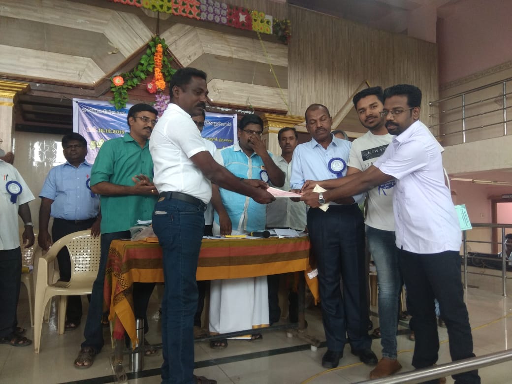 சிவகங்கை மாவட்டத்தில் நீதிபதியின் வாகனம் ஓட்டி விபத்தில் இறந்த அலுவலக உதவியாளர் திரு. சந்திரசேகர் அவர்களின் குடும்பத்தினருக்கு நிவாரண நிதியாக நமது மாவட்ட ஊழியர்களிடமிருந்து திரட்டப்பட்ட ரூபாய் 27000/- திருவாரூர் மாவட்டத்தில் வைத்து 22-12-2018 அன்று நடைபெற்ற மாநில செயற்குழுவில் காசோலையாக வழங்கப்பட்டது.