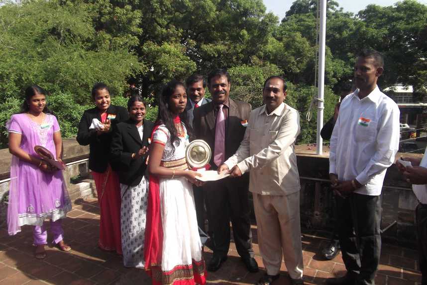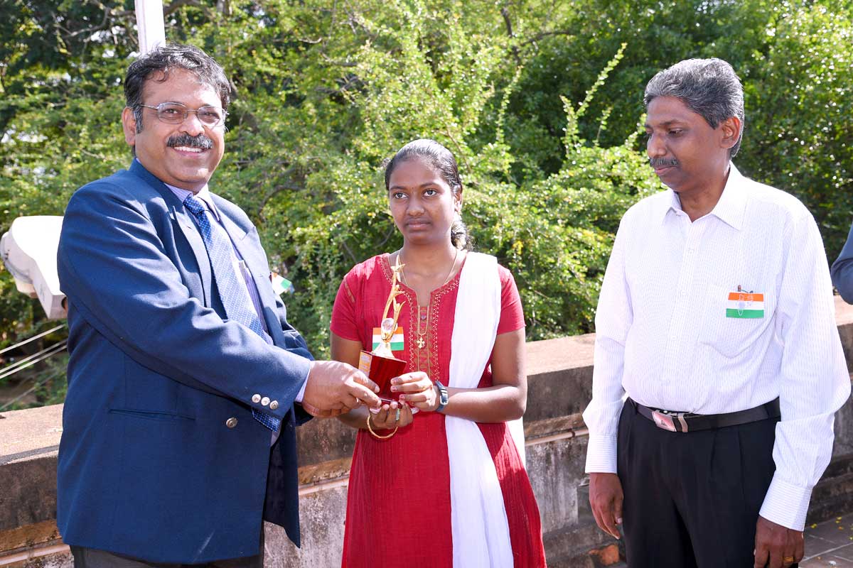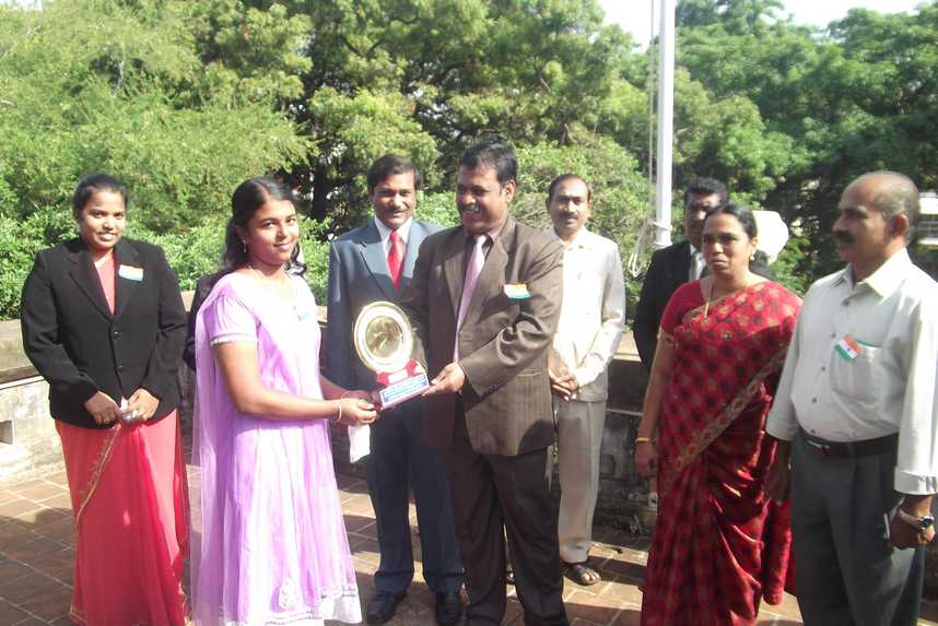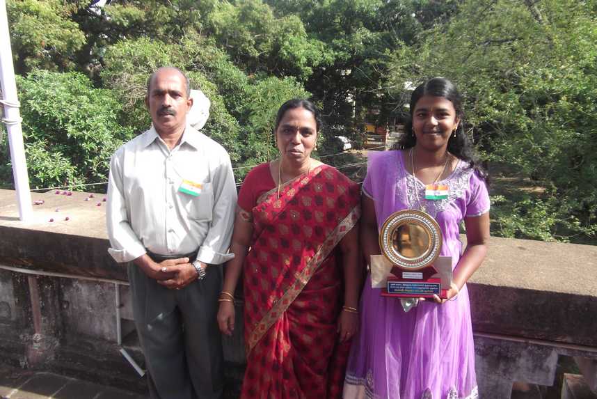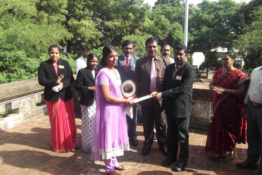 Selvi. K. Arthi Priyadharshini, Daughter of Tmt. J. Sudha, Junior Assistant, Principal District Munsif’s Court, Nagercoil. 2nd Top Scorer in 10th Standard Public Examinations among Judicial Staff Member Children of Kanniyakumari District. Prizes distributed by Hon’ble District Judge Thiru. G. Chandrasekaran.